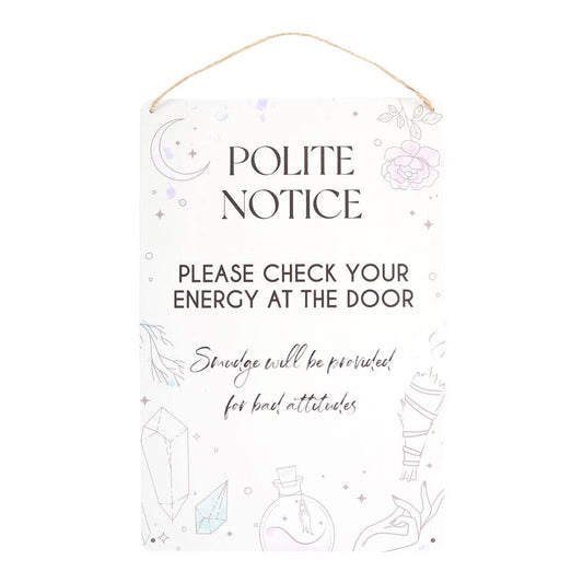 Check Your Energy at the Door Metal Hanging Sign