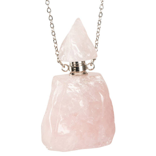 Stone Bottle Essential Oil Necklace – Raw Rose Quartz or Amethyst