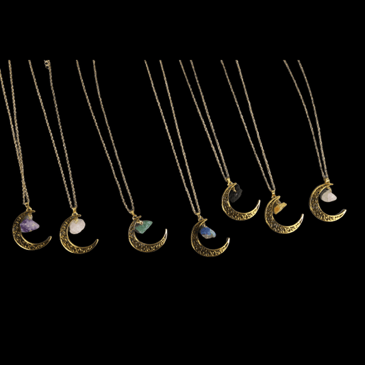 Raw Crystal Crescent Moon Necklace