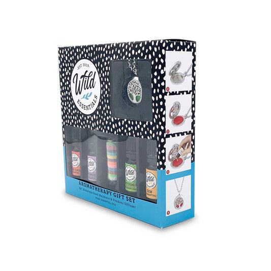 Tree Of Life Essential Oil Diffuser Necklace Set w/ 4 Oils