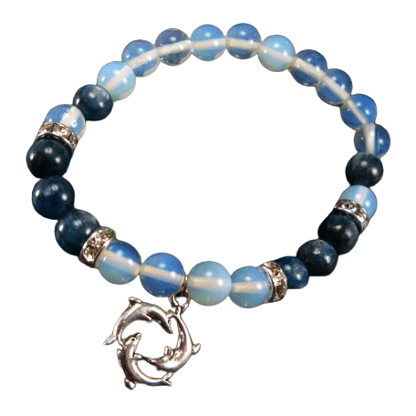 Opalite and Kyanite Stone Bracelet Dolphin Charm
